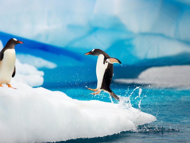 Пигвин запрыгивает на льдину обои для рабочего стола, картинки, фото, 800x600. | ||||||||||||||||