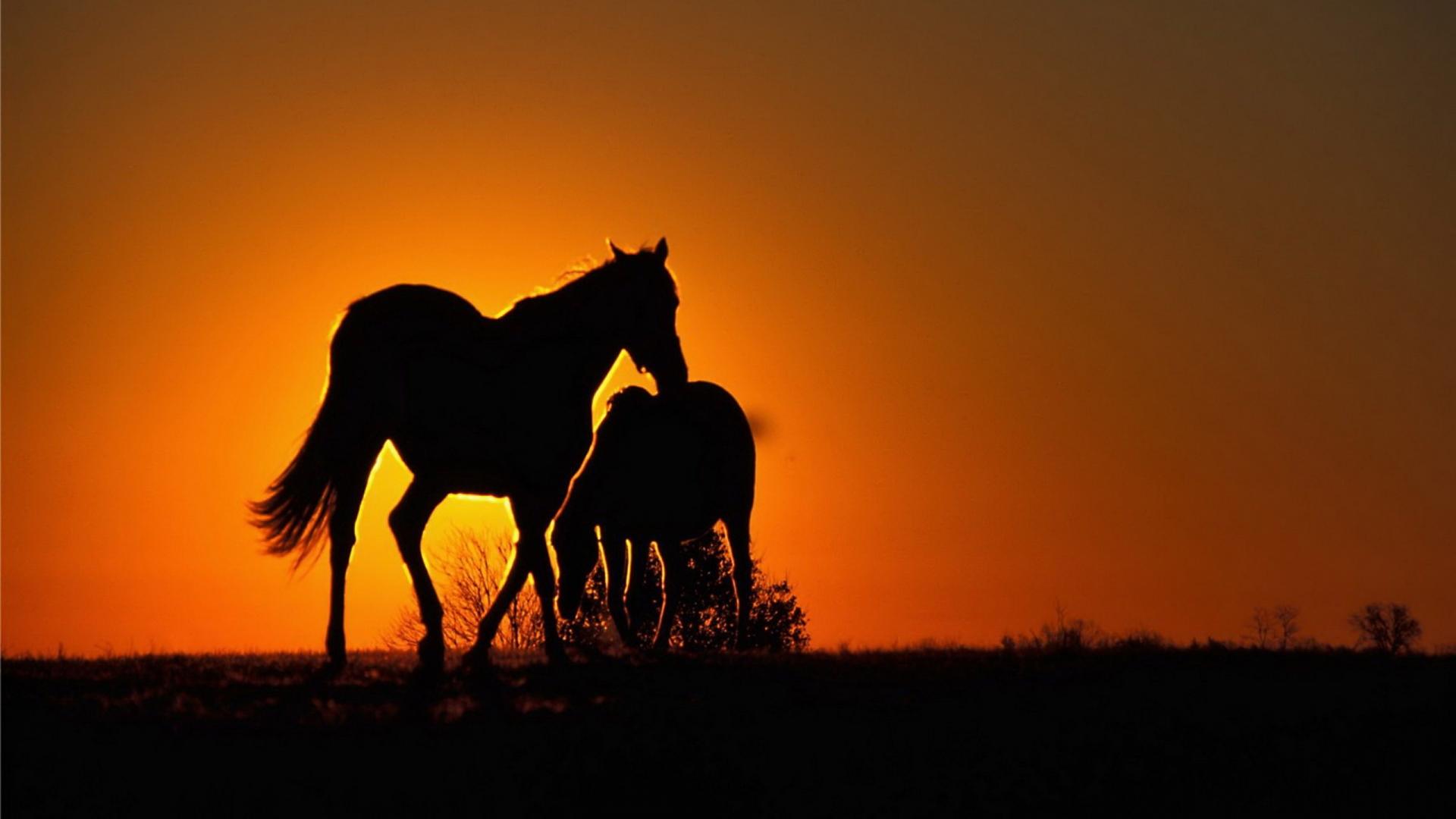 Пара лошадей на закате обои для рабочего стола, картинки, фото, 1920x1080. | ||||||||||||||||