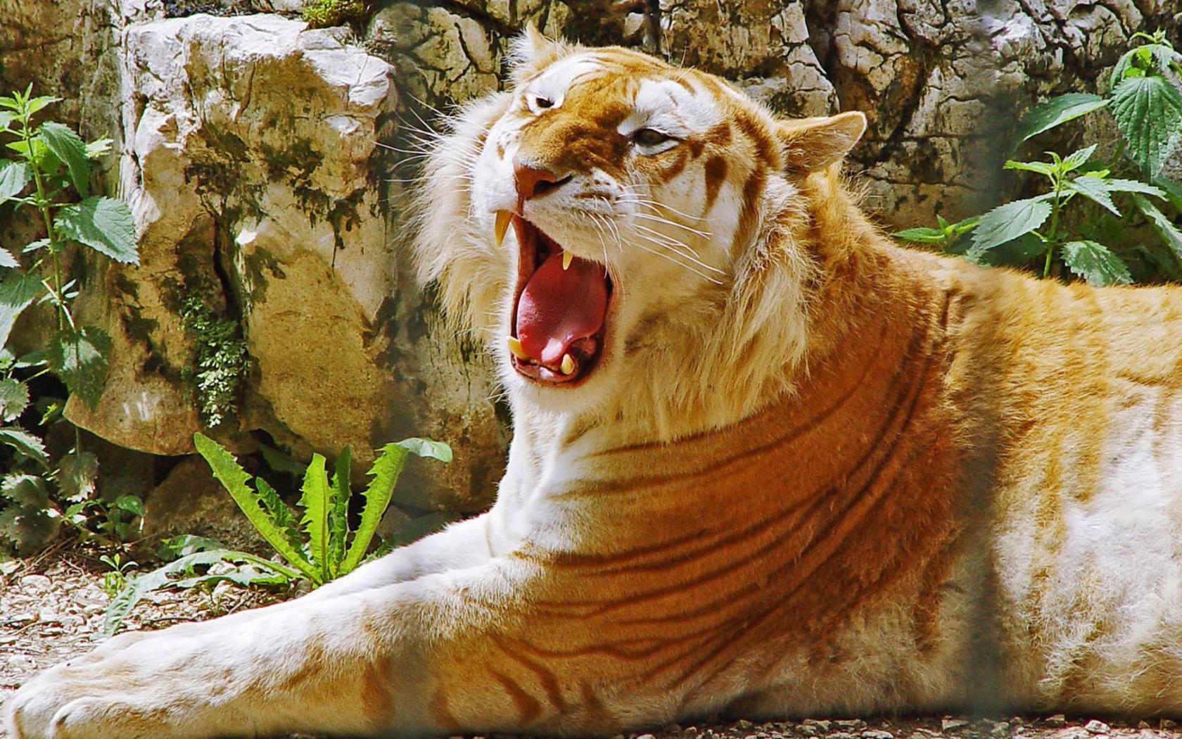 Тигр зивает обои для рабочего стола, картинки, фото, 1680x1050. | |||||||||||||||