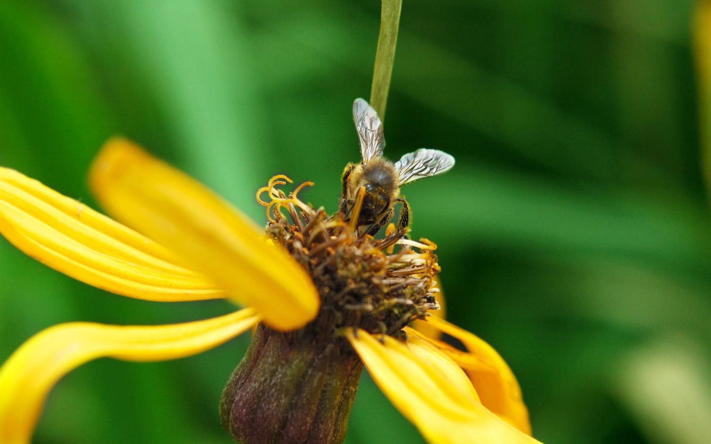 Пчела на раскрывшемся желтом цветке обои для рабочего стола, картинки, фото, 1440x900. | ||||||||||||||||||||||