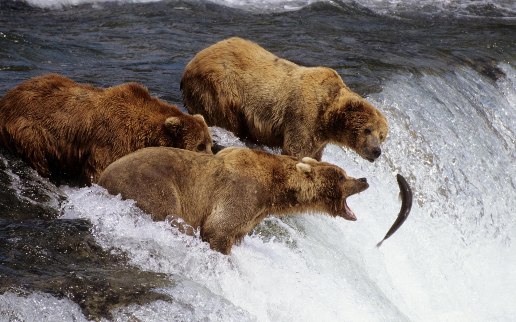 Медведи рыболовы обои для рабочего стола, картинки, фото, 1680x1050. | ||||||||||||||||