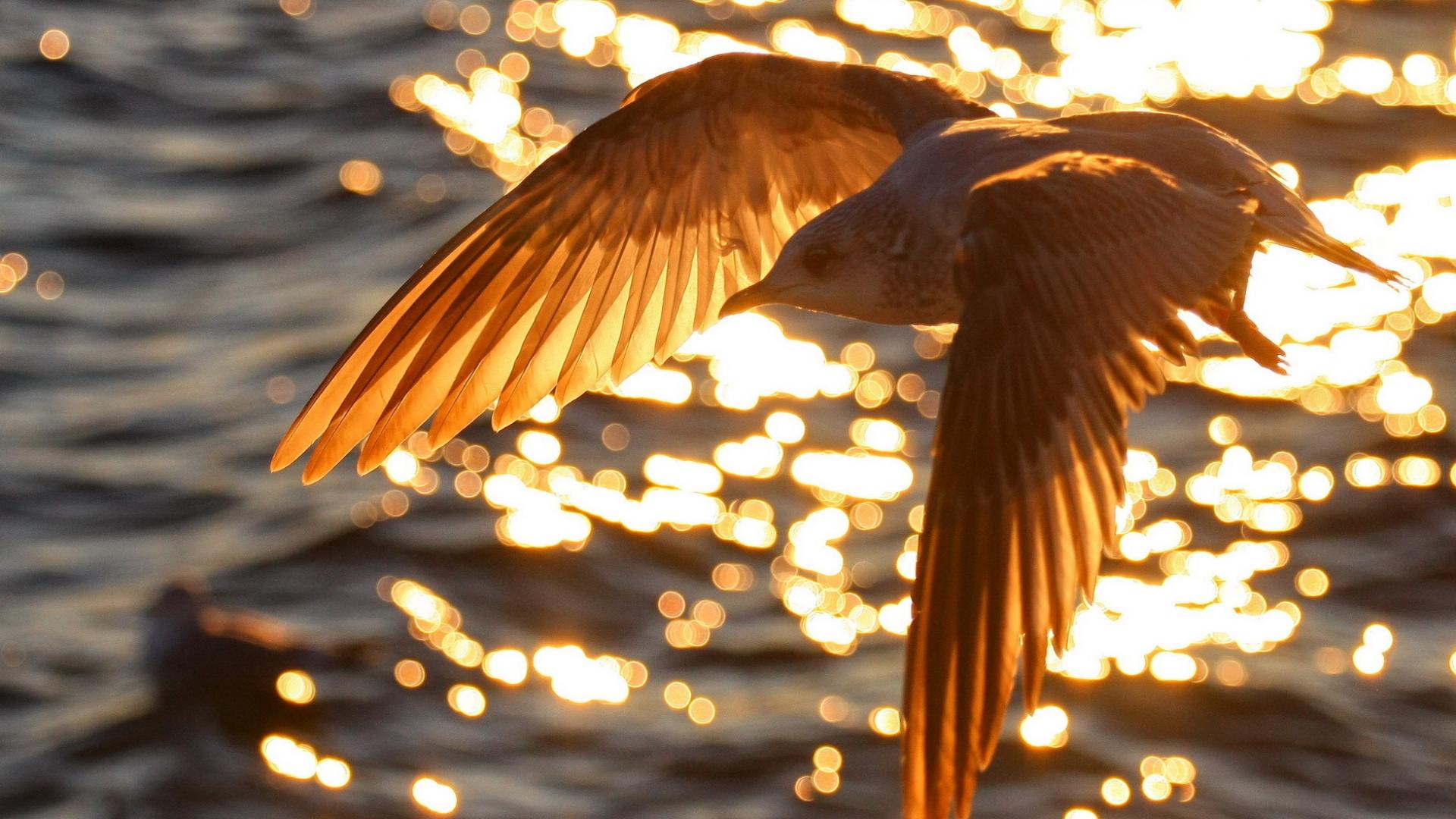 Чайка в полете над водной гладью, 1920х1080 обои для рабочего стола, картинки, фото, 1920x1080. | |||||||||||||||||||||||