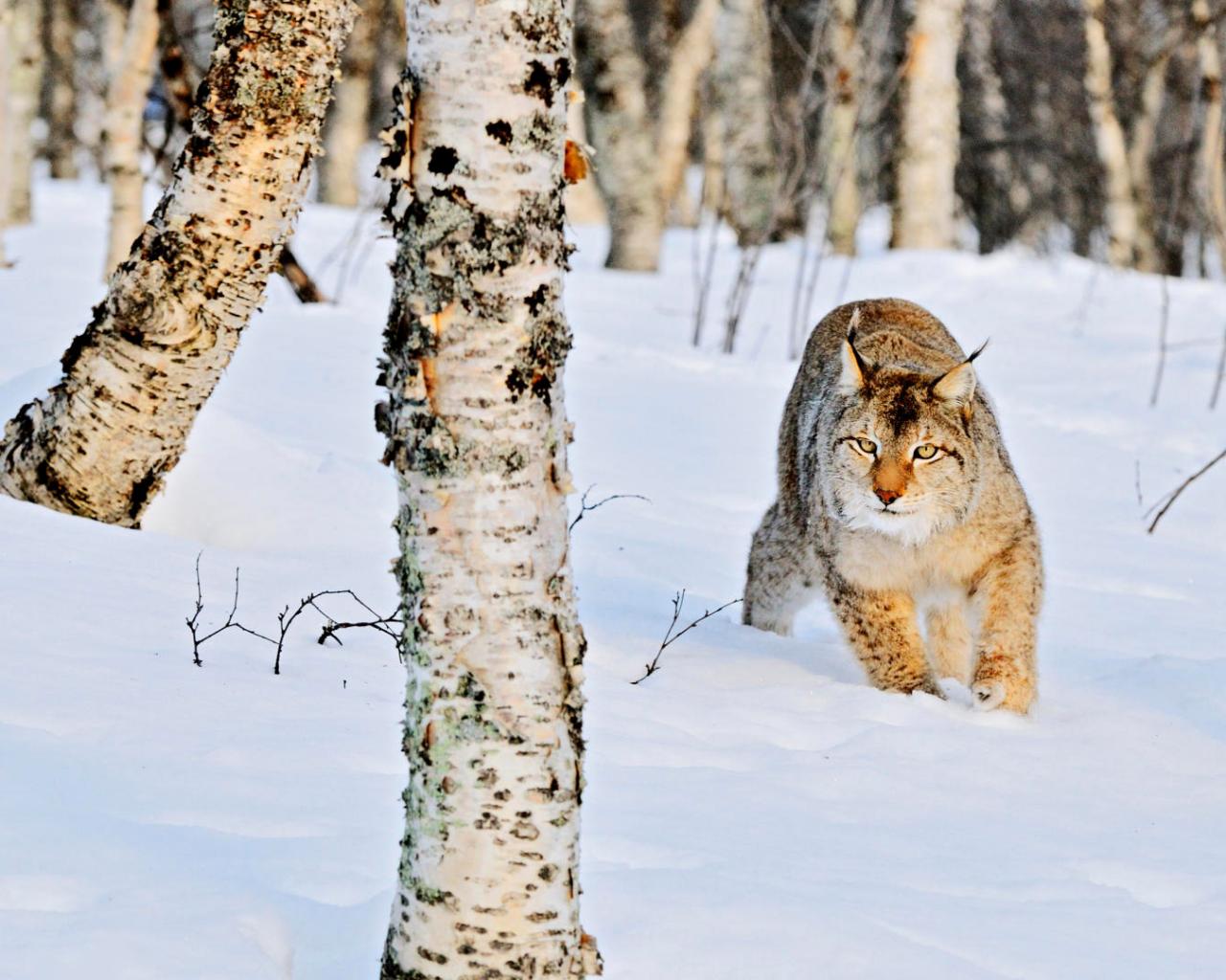 Природа, зима, лес, роща, березы, стволы, снег, сугробы, дикая, кошка, рысь обои для рабочего стола, картинки, фото, 1280x1024. | ||||||||||||||||||||||