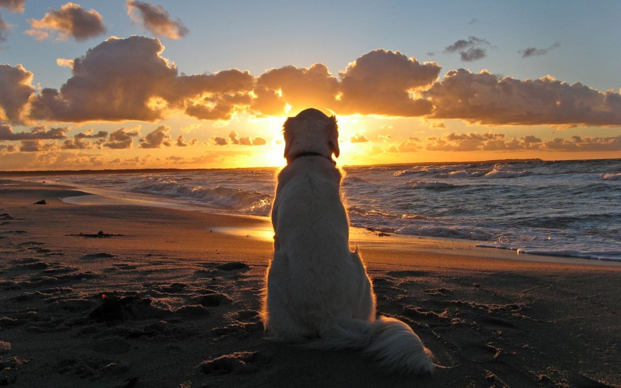 Белый пес на закате обои для рабочего стола, картинки, фото, 1280x800. | ||||||||||||||||