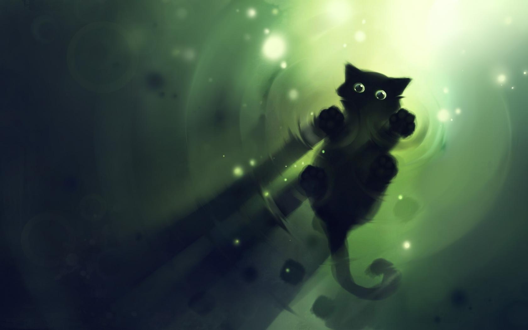 Кошка, Рисунок, Вода обои для рабочего стола, картинки, фото, 1680x1050. | ||||||||||||||||