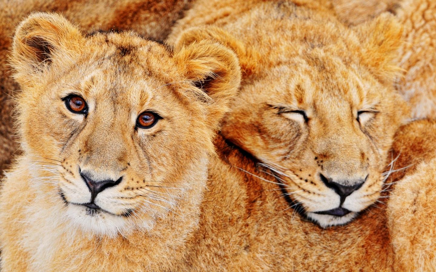 Львенки, хищники, кошачьи обои для рабочего стола, картинки, фото, 1440x900. | ||||||||||||||||