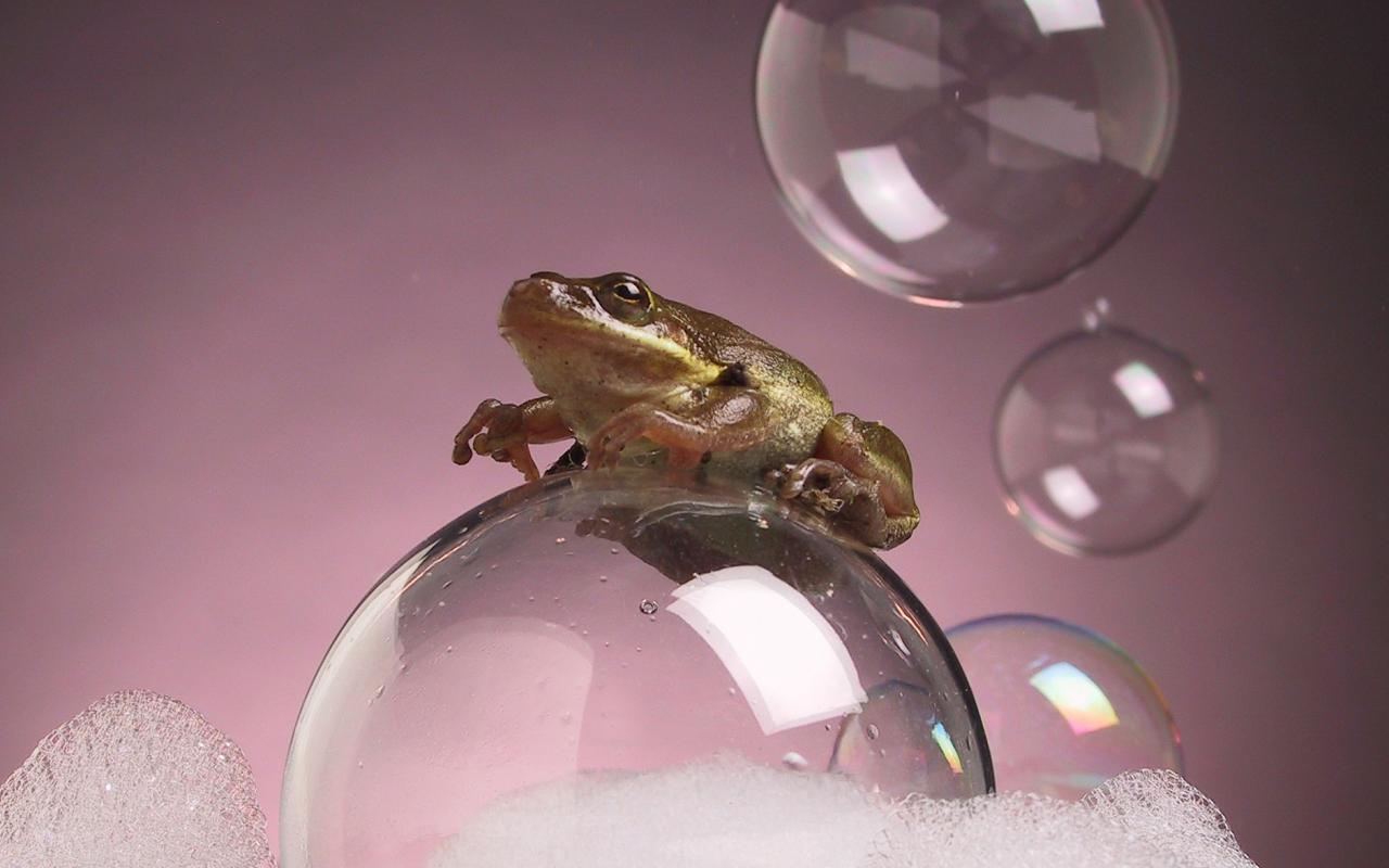 Лягушка на мыльном пузыре - скачать обои для рабочего стола, картинки, фото, 1280x800. | ||||||||||||||||||||||