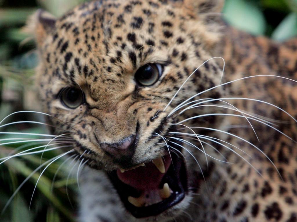 Леопард, усы, клыки, оскал обои для рабочего стола, картинки, фото, 1024x768. | ||||||||||||||||