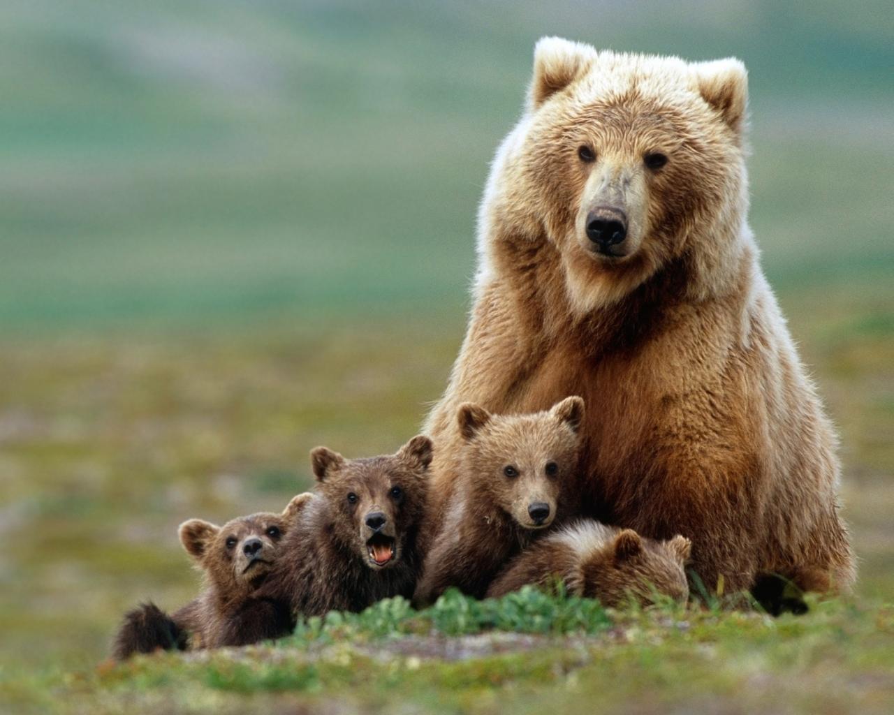 Медведи, медведица, медвежата, гризли, семья обои для рабочего стола, картинки, фото, 1280x1024. | ||||||||||||||||||||||