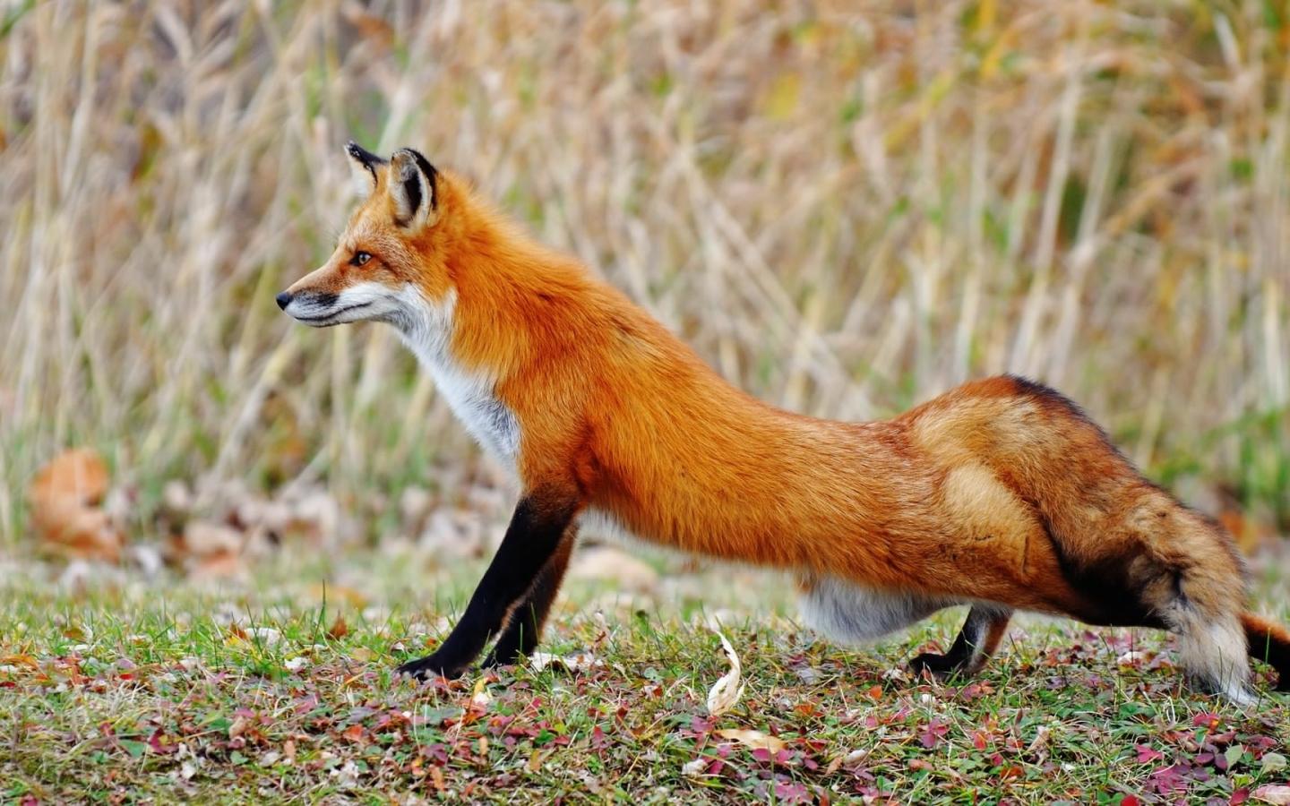 Рыжая, лиса, потягивается обои для рабочего стола, картинки, фото, 1440x900. | ||||||||||||||||