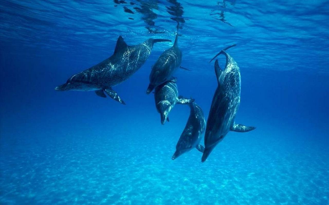 Дельфины под водой обои для рабочего стола, картинки, фото, 1280x800. | |||||||||||||||||