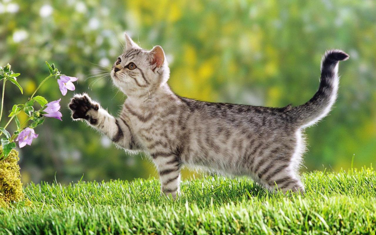 Кошка, поляна, котенок, цветок обои для рабочего стола, картинки, фото, 1280x800. | ||||||||||||||||