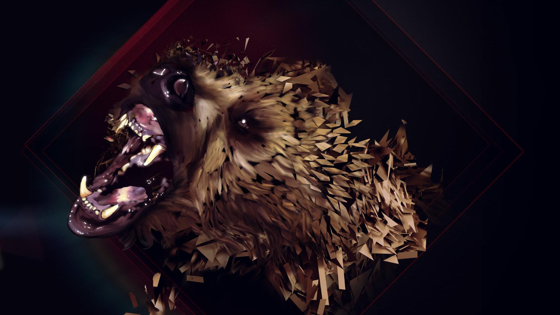 Медведь, дезайн, пасть, клыки, кусочки обои для рабочего стола, картинки, фото, 1920x1080. | ||||||||||||||||