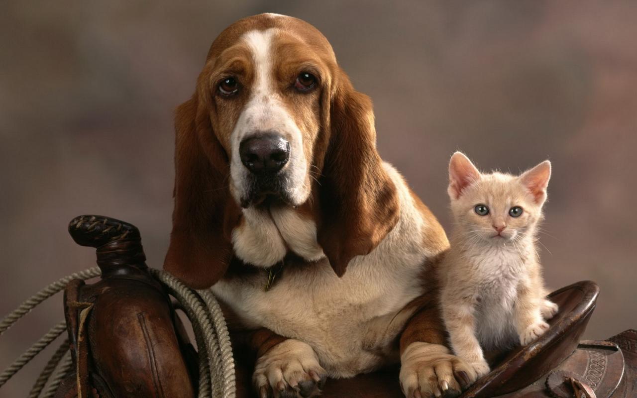 Вислоухая собака и кошка на седле обои для рабочего стола, картинки, фото, 1280x800. | |||||||||||||||||