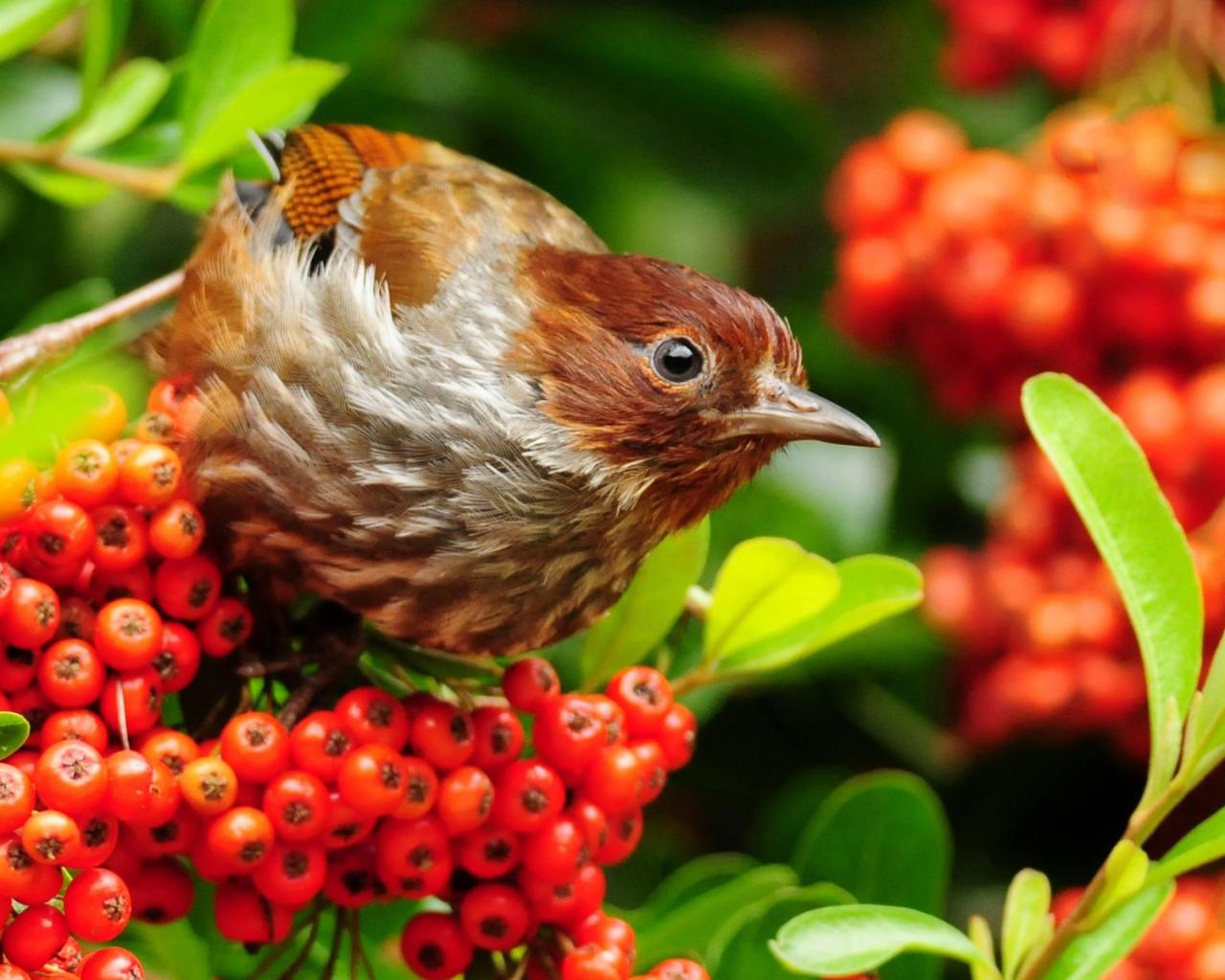 Птица, ветки, ягоды обои для рабочего стола, картинки, фото, 1280x1024. | ||||||||||||||||