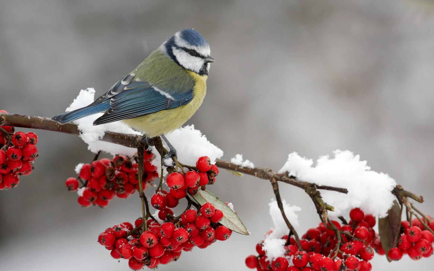 Снегирь на рябине обои для рабочего стола, картинки, фото, 1440x900. | ||||||||||||||||