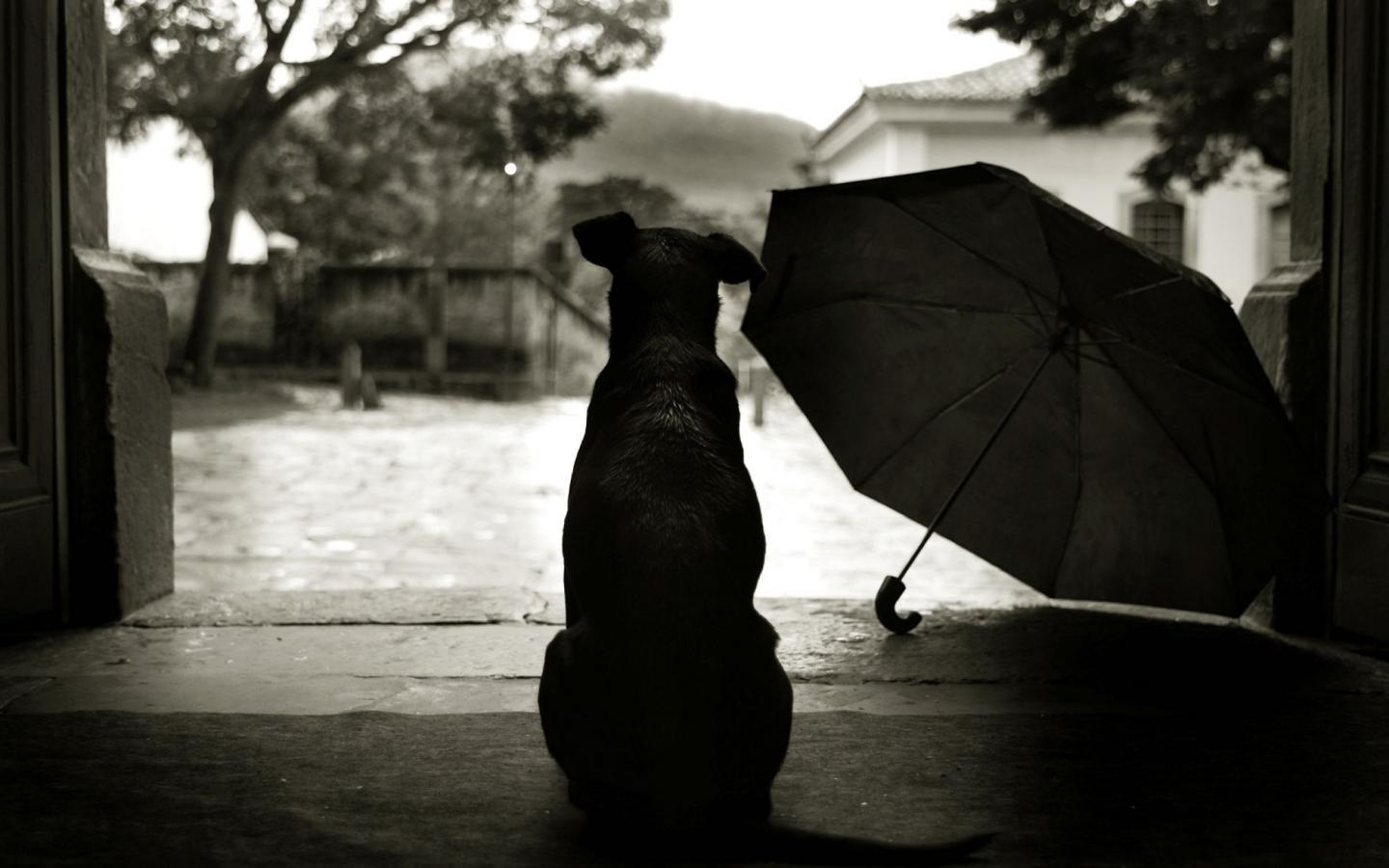 Собака и зонт обои для рабочего стола, картинки, фото, 1440x900. | ||||||||||||||||