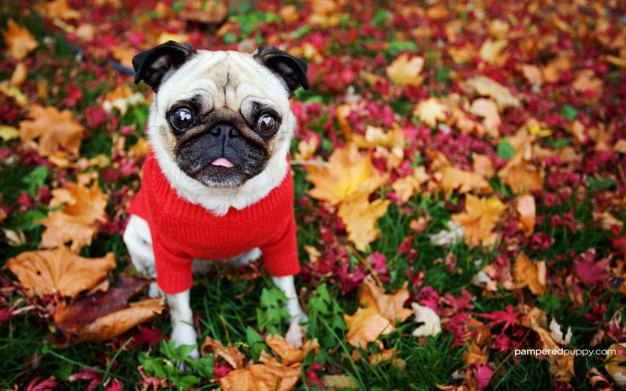 Осенний мопс обои для рабочего стола, картинки, фото, 1280x800. | ||||||||||||||||