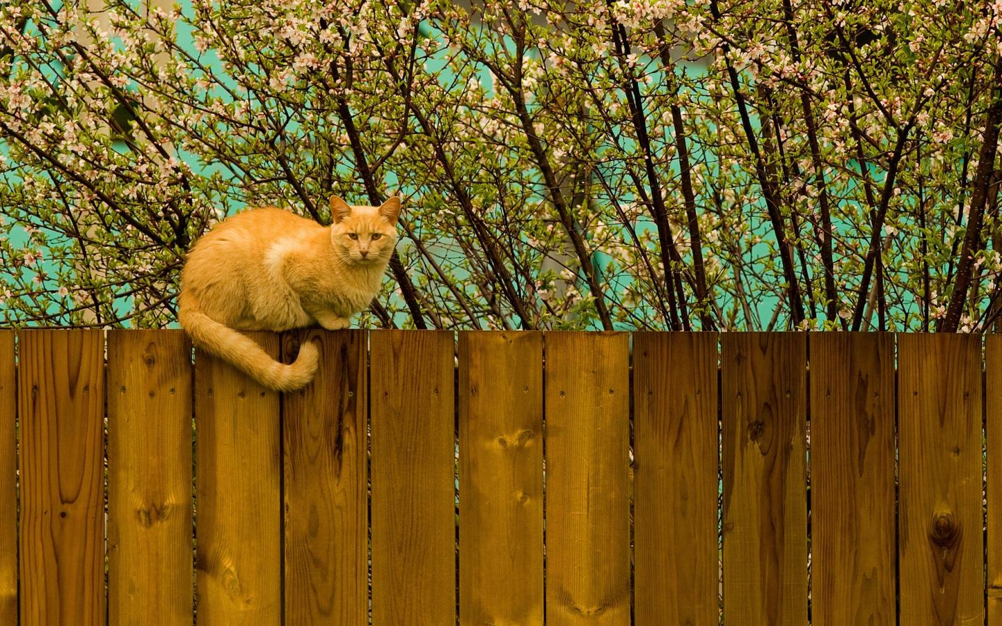 Рыжий кот на заборе обои для рабочего стола, картинки, фото, 1440x900. | |||||||||||||||||