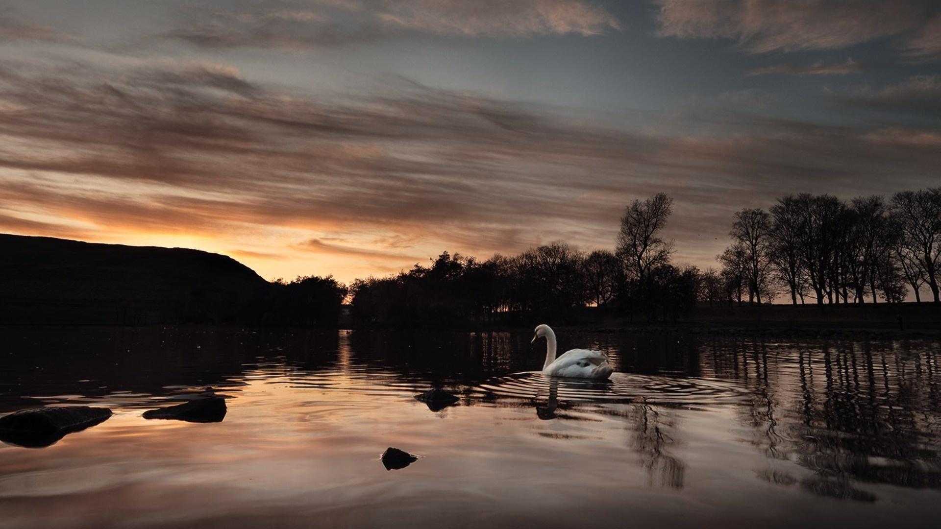 Лебедь, зеро, вечер обои для рабочего стола, картинки, фото, 1920x1080. | ||||||||||||||||