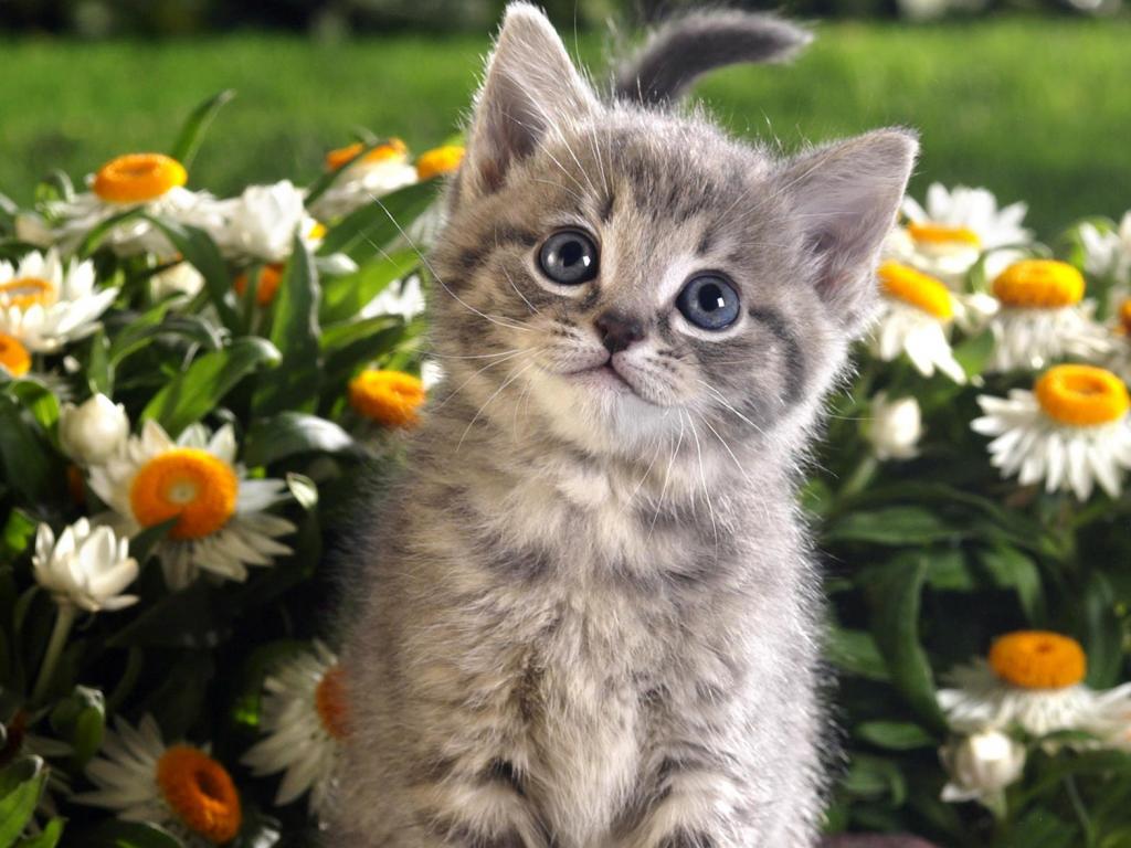Котенок в ромашках обои для рабочего стола, картинки, фото, 1024x768. | |||||||||||||||||