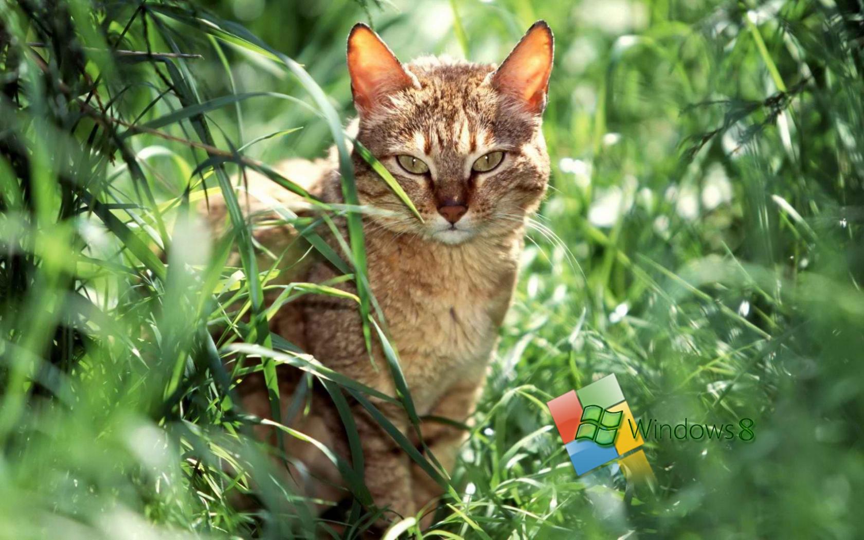 Трава, кошка, Windows8 обои для рабочего стола, картинки, фото, 1680x1050. | |||||||||||||||||