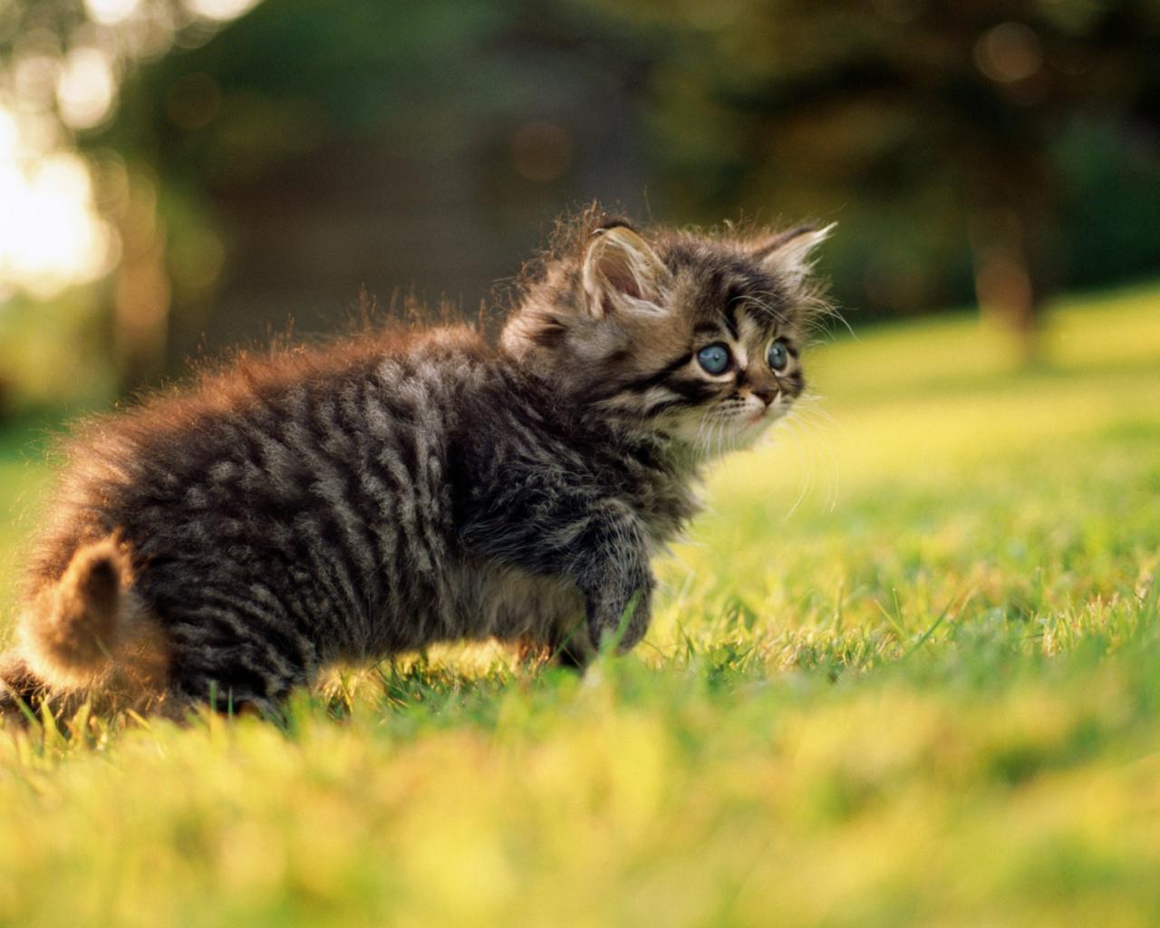 Серый котенок на лужайке обои для рабочего стола, картинки, фото, 1280x1024. | ||||||||||||||||||||||