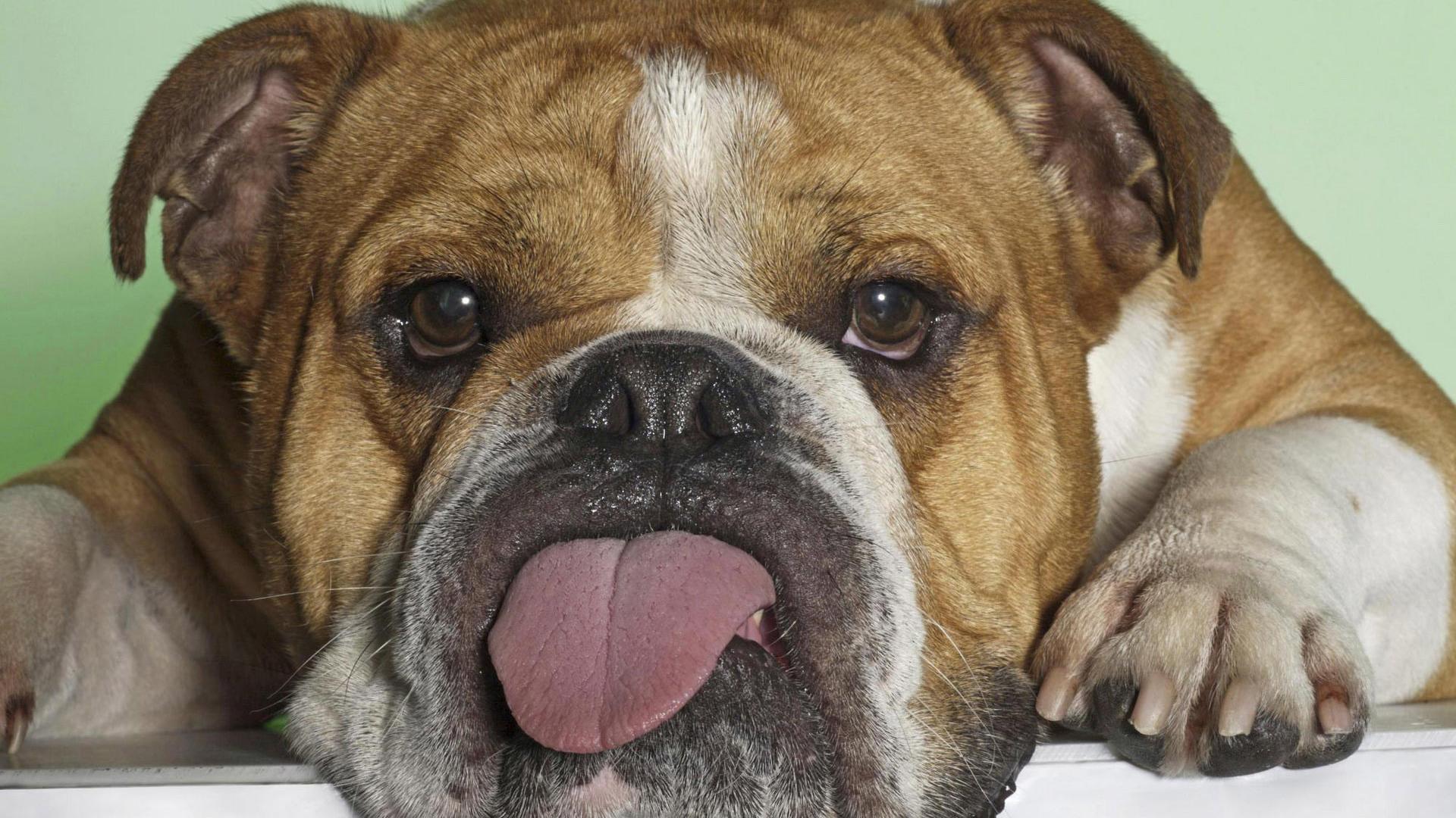 Английский, бульдог, лежит, язык, устал обои для рабочего стола, картинки, фото, 1920x1080. | ||||||||||||||||||||||