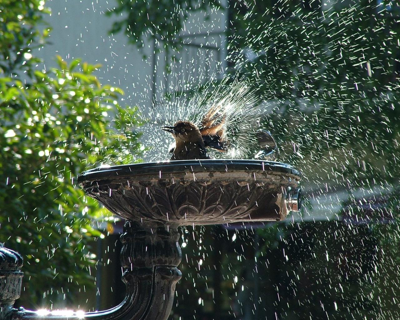 Птица плещется в фонтане обои для рабочего стола, картинки, фото, 1280x1024. | ||||||||||||||||