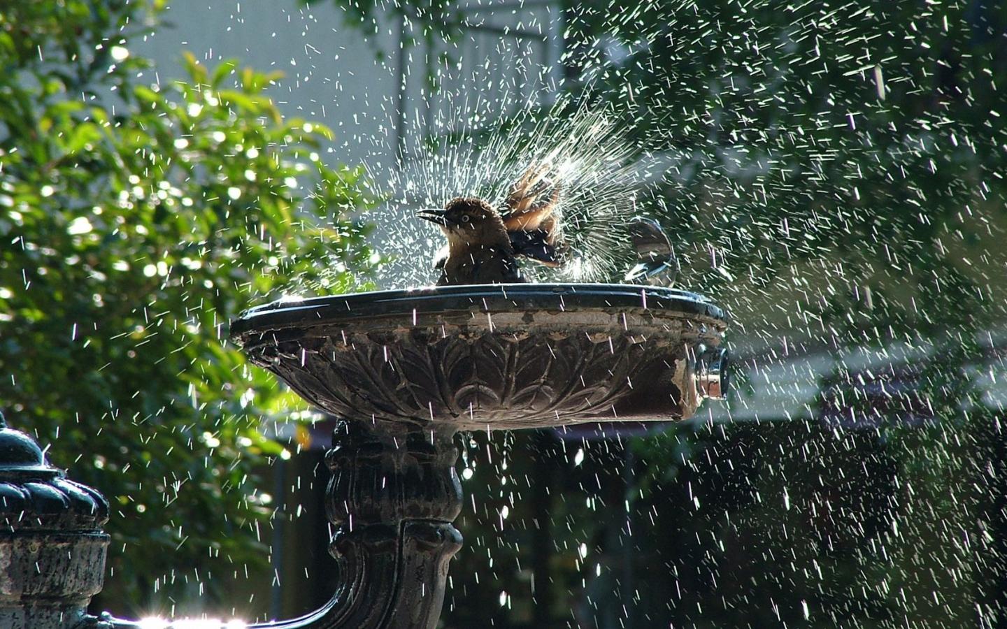 Птичка купается в городском фонтане обои для рабочего стола, картинки, фото, 1440x900. | ||||||||||||||||||||||