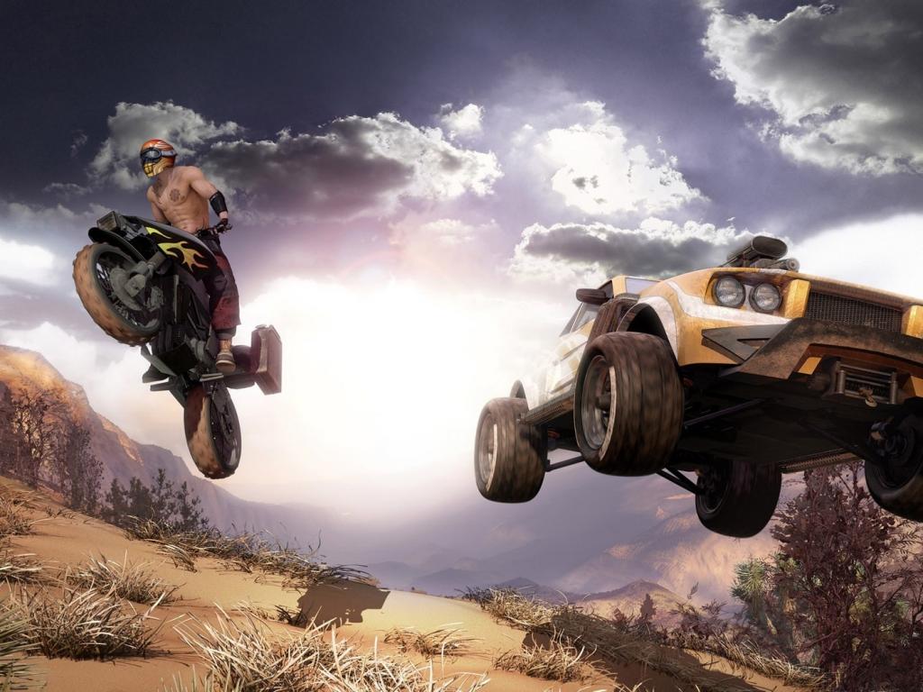 Мотоцикл и джип в прыжке, 1920х1080 обои для рабочего стола, картинки, фото, 1024x768. | |||||||||||||||||||||||