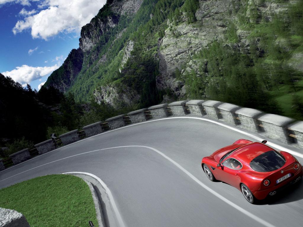 Альфа Ромео в горах обои для рабочего стола, картинки, фото, 1024x768. | |||||||||||||||||