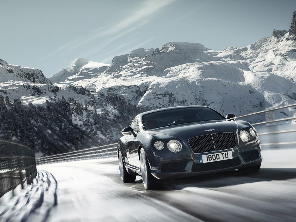Bentley на зимней дороге обои для рабочего стола, картинки, фото, 1024x768. | ||||||||||||||||