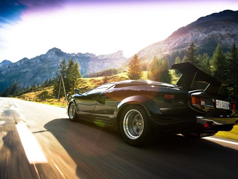 Lamborghini, ламборджини, countach, скорость, свет, солнце, облака, небо, асвальт, дорога, горы, ска обои для рабочего стола, картинки, фото, 800x600. | ||||||||||||||||||||||