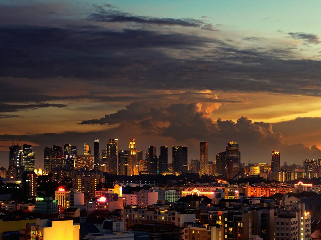 Огни, небо, закат обои для рабочего стола, картинки, фото, 1024x768. | |||||||||||||||||