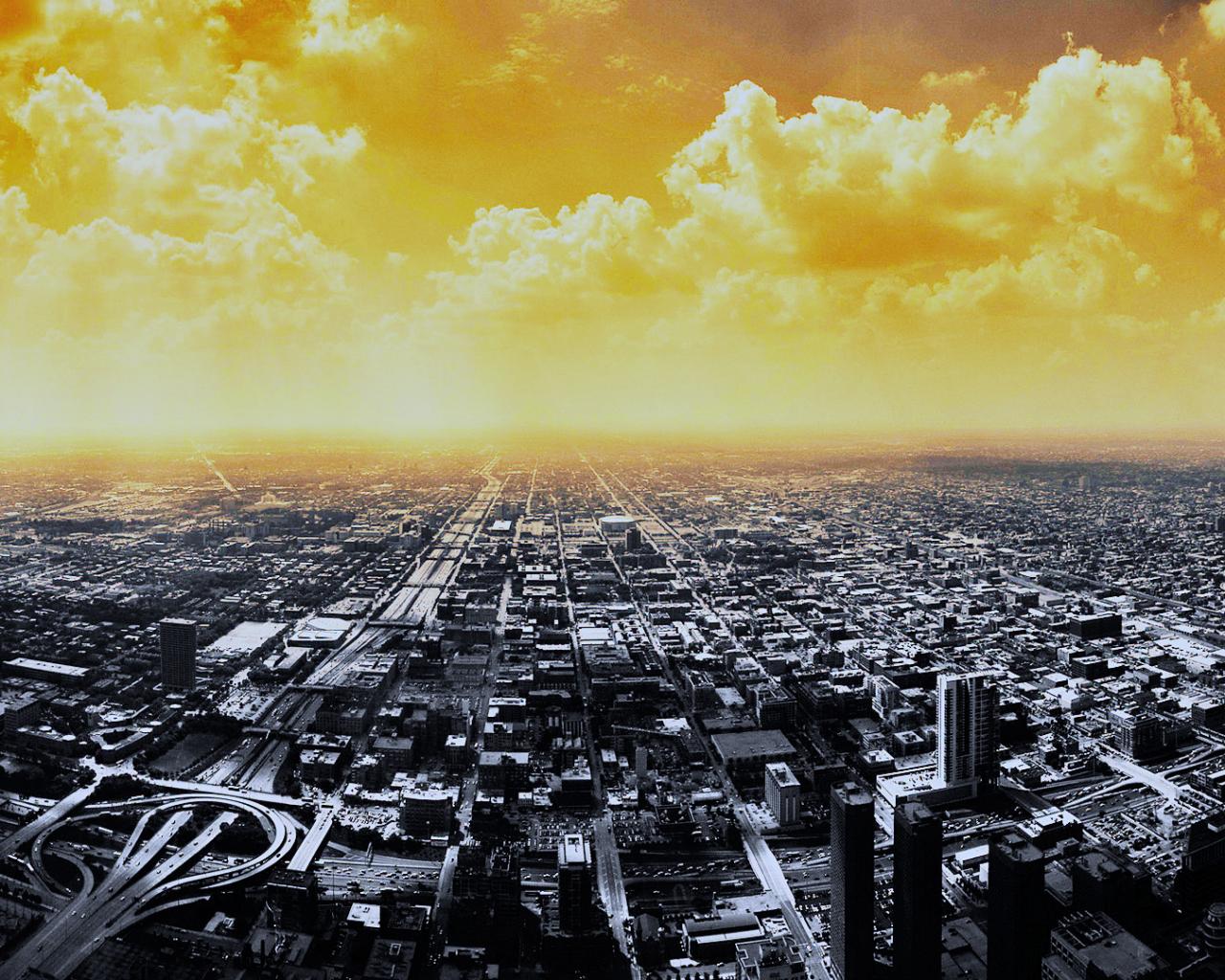 Город, черно - белое, рассвет, вид с высоты обои для рабочего стола, картинки, фото, 1280x1024. | |||||||||||||||||||||||