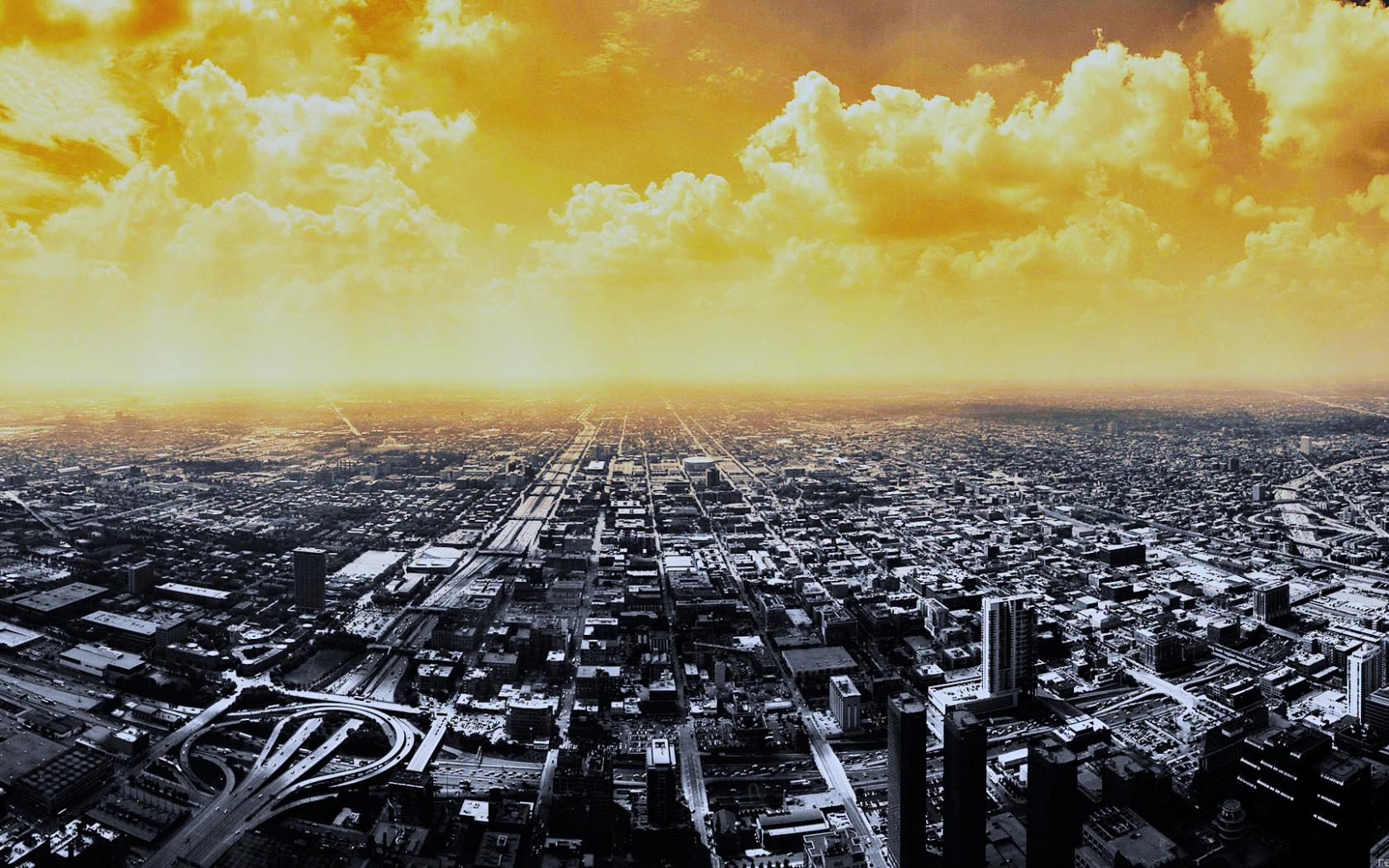 Город, черно - белое, рассвет, вид с высоты обои для рабочего стола, картинки, фото, 1680x1050. | ||||||||||||||||||||||