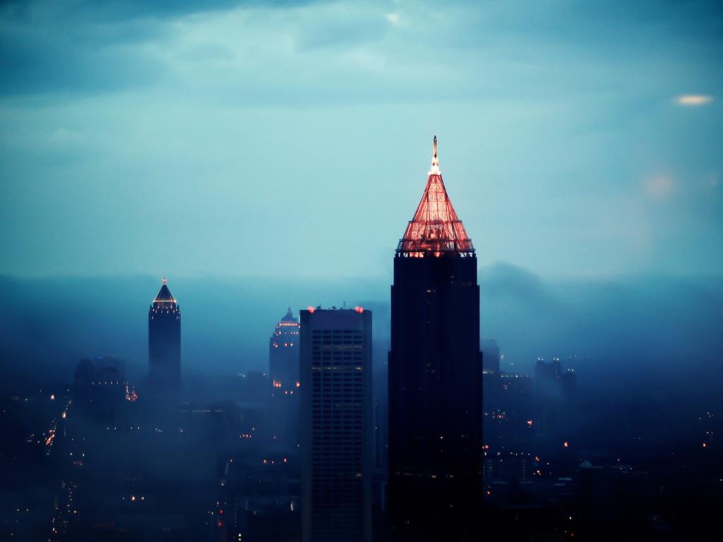 Мегаполис, вечер, небоскребы, туман обои для рабочего стола, картинки, фото, 1024x768. | ||||||||||||||||||||||