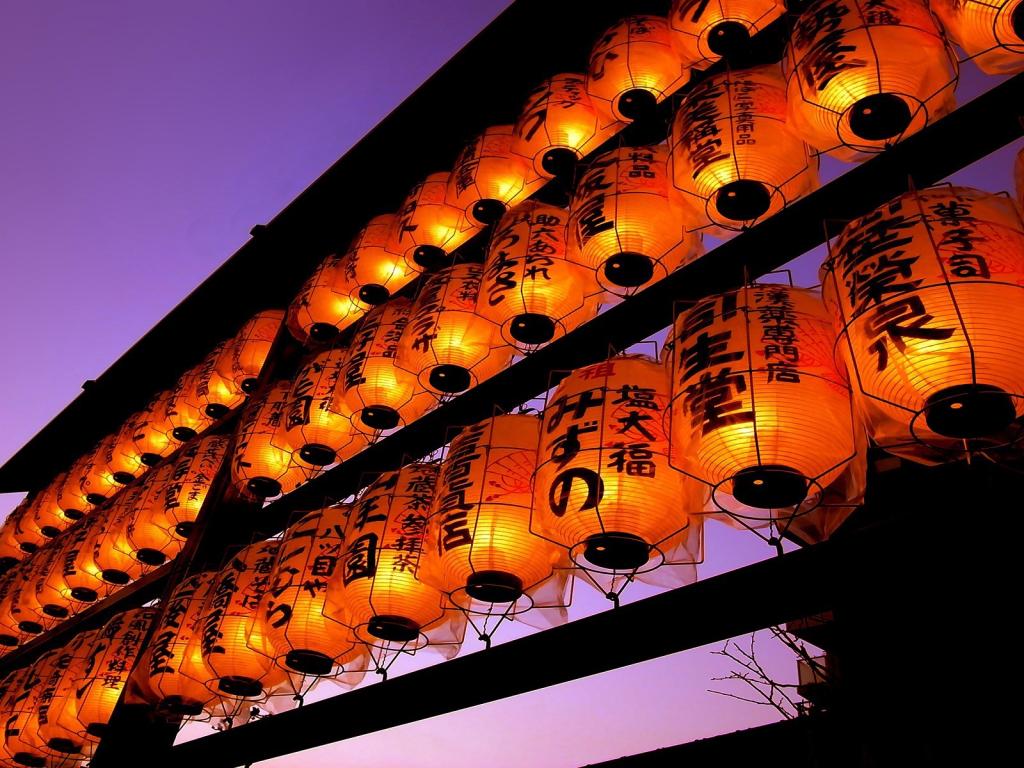 Японские фонарики вечером обои для рабочего стола, картинки, фото, 1024x768. | ||||||||||||||||||||||