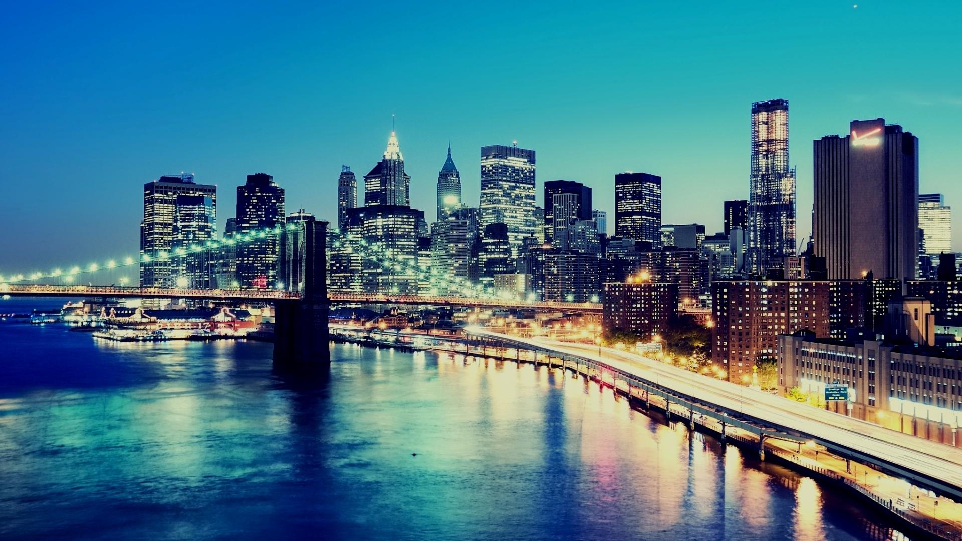 Ночь, город, огни, здания, небоскребы, нью-йорк, нижний манхэттен, сооружение, мост, фон обои для рабочего стола, картинки, фото, 1920x1080. | ||||||||||||||||||||||