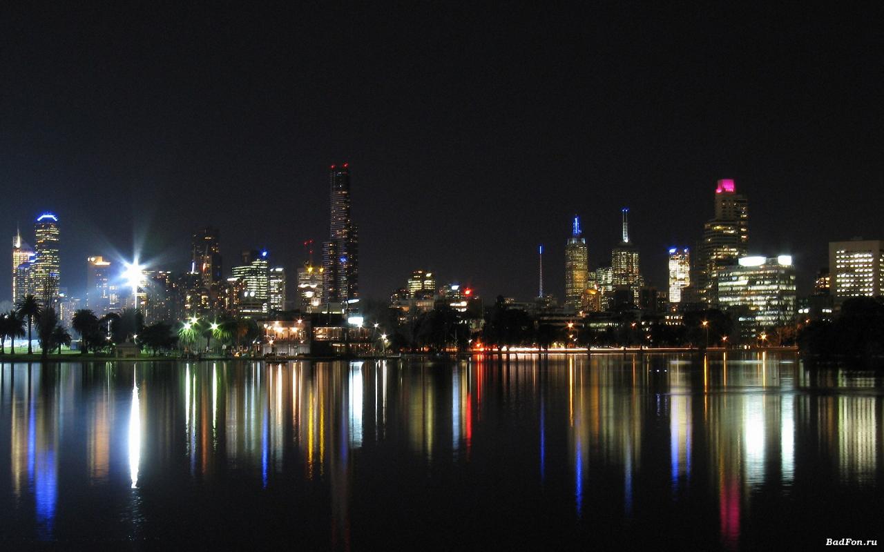 Ночной город, огни, вода, отражение обои для рабочего стола, картинки, фото, 1280x800. | ||||||||||||||||||||||
