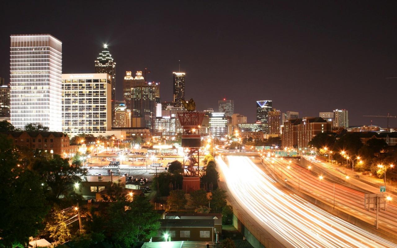 Ночь, дорога, здание, огни обои для рабочего стола, картинки, фото, 1280x800. | ||||||||||||||||