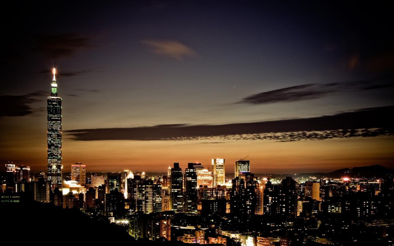 Тайбэй, небоскребы, вечер обои для рабочего стола, картинки, фото, 1280x800. | ||||||||||||||||