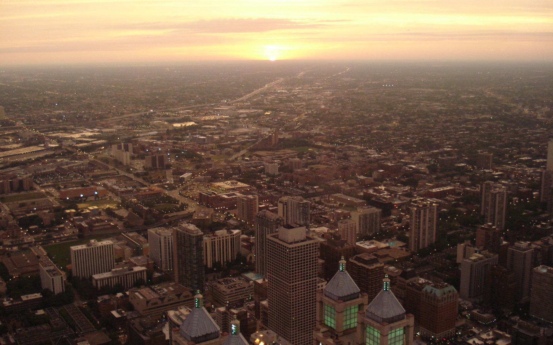 Рассвет в Чикаго обои для рабочего стола, картинки, фото, 1920x1200. | ||||||||||||||||