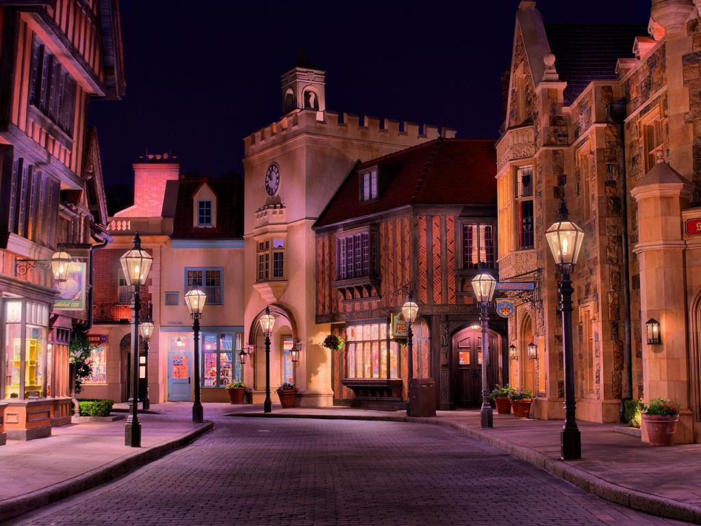 Ночь, улица, дома, фонари, свет обои для рабочего стола, картинки, фото, 1024x768. | ||||||||||||||||||||||