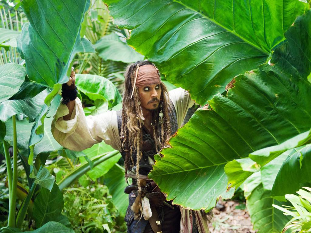 Джонни депп, джек воробей, пираты карибского моря, джунгли, листва обои для рабочего стола, картинки, фото, 1024x768. | ||||||||||||||||||||||