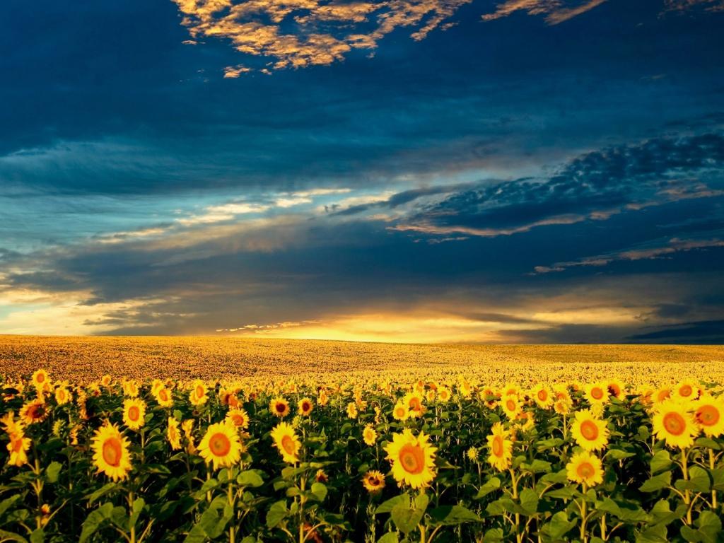 Небо над подсолнухами обои для рабочего стола, картинки, фото, 1024x768. | |||||||||||||||||