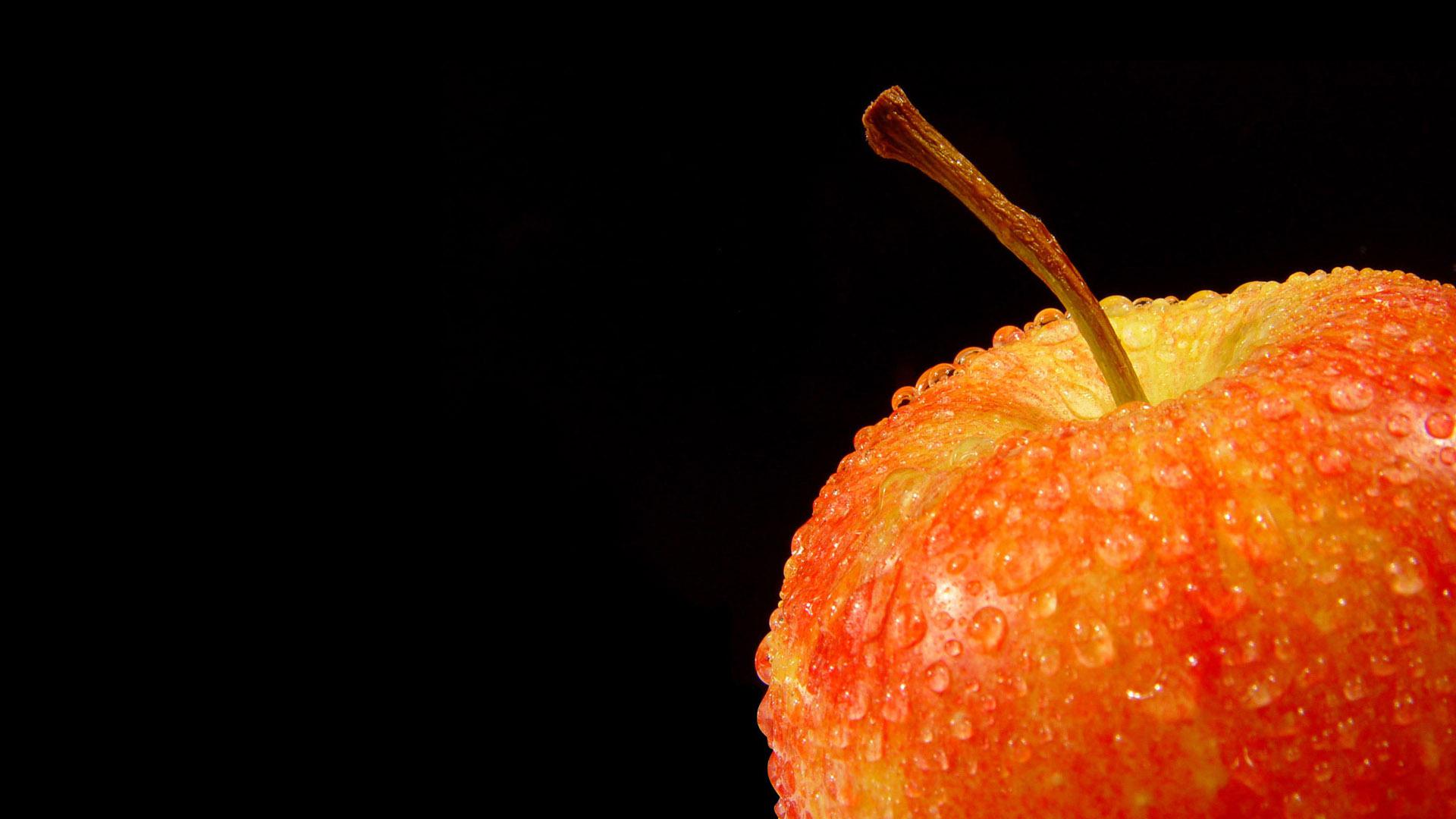 Красное яблоко в каплях росы обои для рабочего стола, картинки, фото, 1920x1080. | ||||||||||||||||