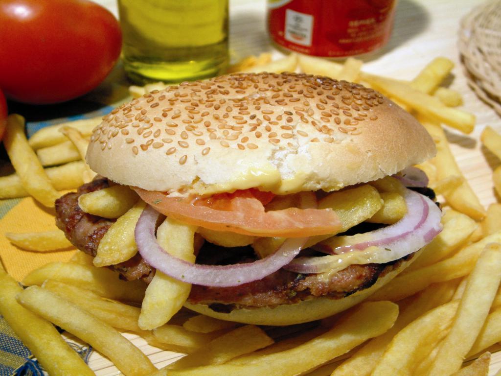 Бургер с лучком и картошкой фри обои для рабочего стола, картинки, фото, 1024x768. | ||||||||||||||||