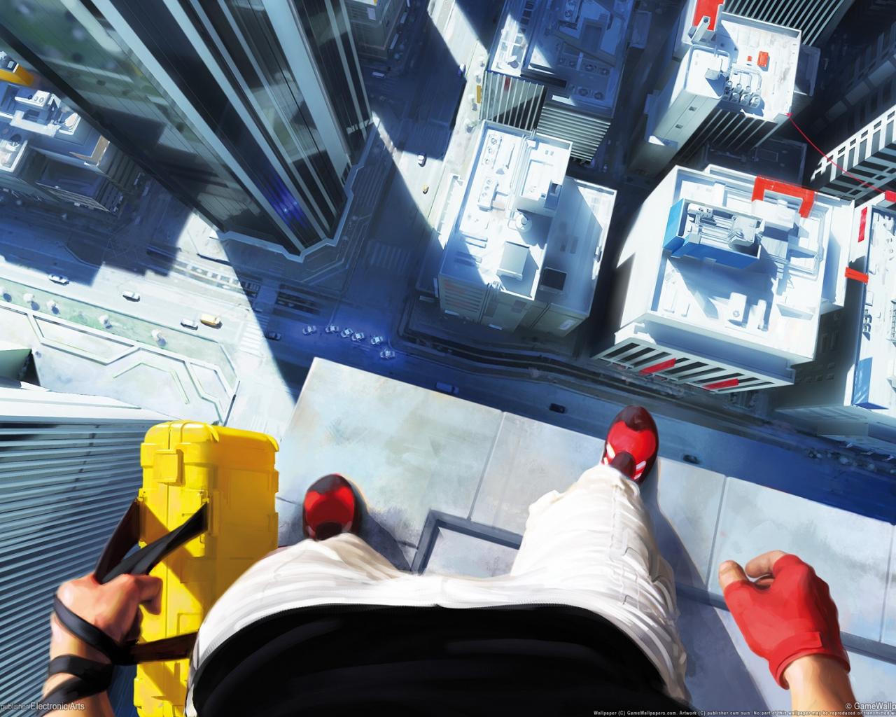 Фейт на краю небоскреба обои для рабочего стола, картинки, фото, 1280x1024. | |||||||||||||||||||||||